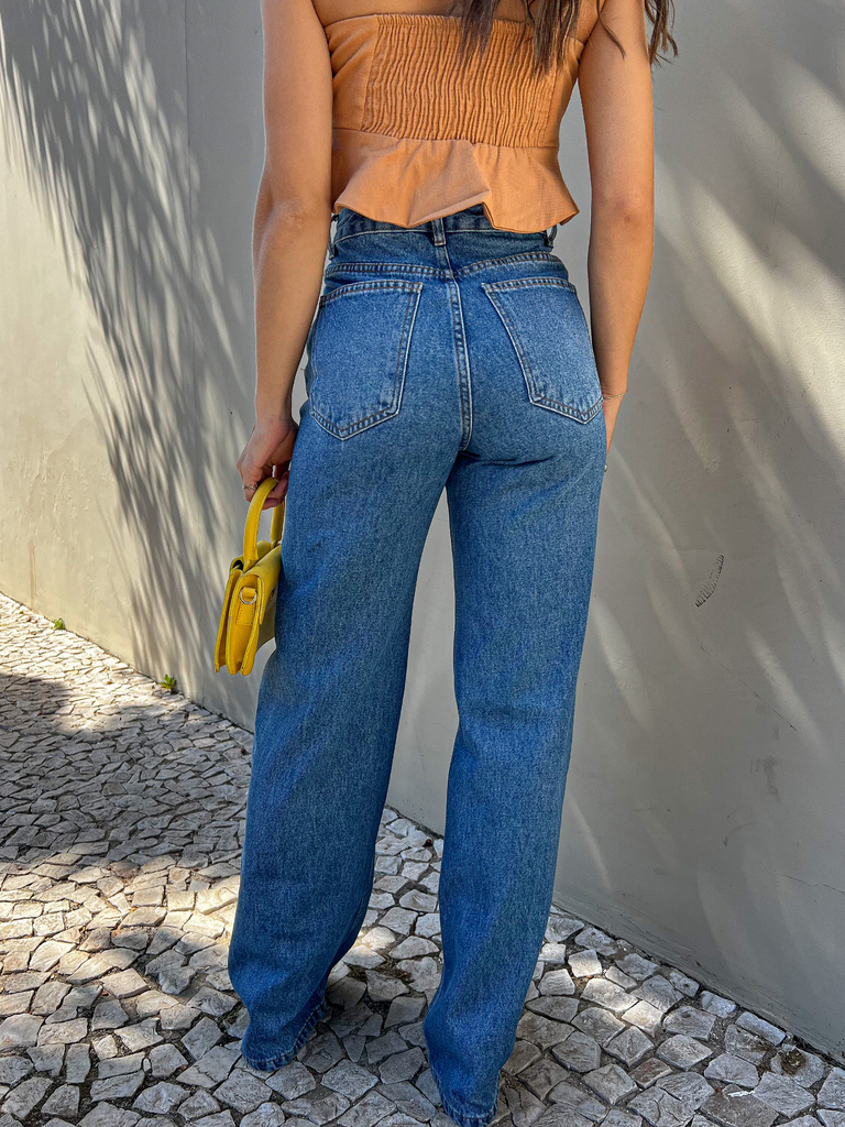 Uma calça jeans wide leg com a modelagem perfeita para elevar o seu estilo. Esta calça oferece uma silhueta ampla e elegante, equilibrando conforto e sofisticação. O corte impecável valoriza a forma natural do corpo, enquanto o denim de alta qualidade proporciona um caimento suave e durável. Ideal para quem busca um visual moderno e confortável, essa calça é uma escolha versátil para criar looks incríveis em qualquer ocasião.