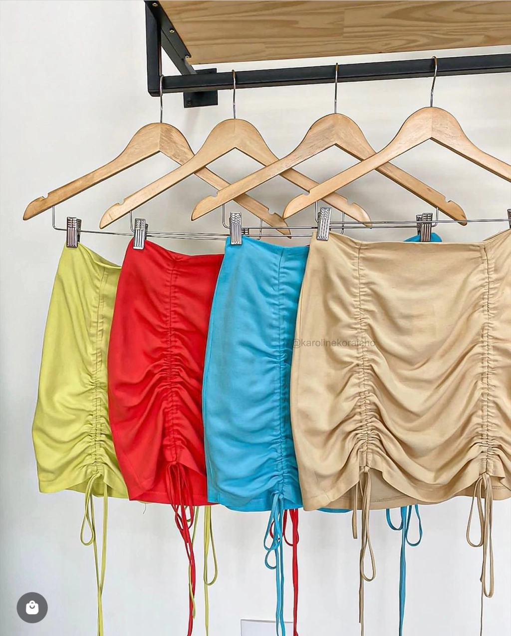 Saia curta com ajuste de comprimento, permitindo personalizar o caimento conforme seu estilo. Versátil e prática, une conforto e modernidade em uma peça cheia de charme.